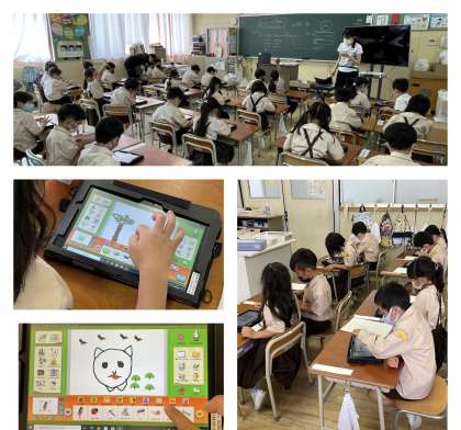 最後は算数ドリルであそんだり、絵をかいたりしました。「いえのたぶれっとよりたのしいわぁ」「またしたいな」などの声も聞かれました。これから学習の際に使用していきたいと思います。