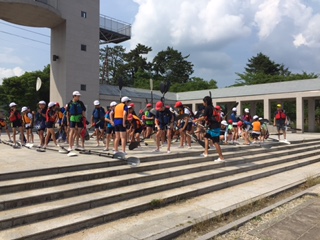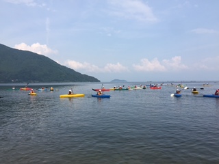 開舎式、避難訓練の後は楽しみにしていたカヤック体験です。初めはおそるおそるでしたが、すぐに慣れて「最高に楽しい!」と言っていました。この後、入浴、夕食、キャンドルファイヤーと楽しみが続きます。