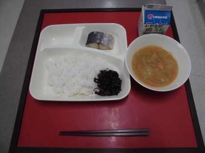 6月23日(木)の献立は「ごはん・牛乳・さごしの塩焼き・みそ汁・牛ひじきそぼろ」でした。