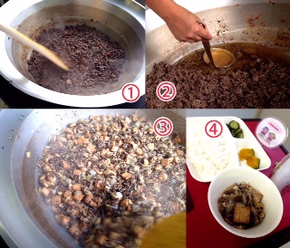 本日の献立は「すき焼き煮・きゅうりの酢のもの・焼きかぼちゃの甘みつかけ・ごはん・牛乳」でした。