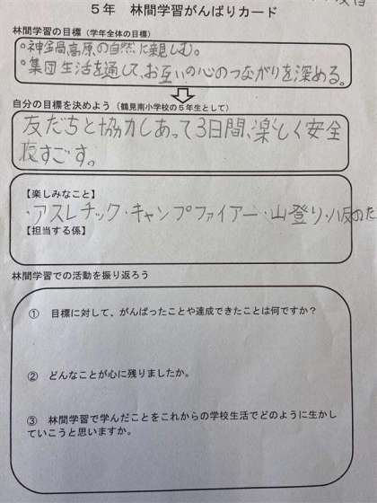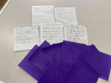 ですが、水泳に代わって学級活動では「折り鶴集会」に向けて平和への思いを折り紙に書いたり、別のクラスでは「林間学習」に向けてのがんばりカードを作成して、子どもたちも楽しそうにしていました。