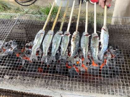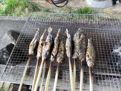 採った魚は炭焼きにします。