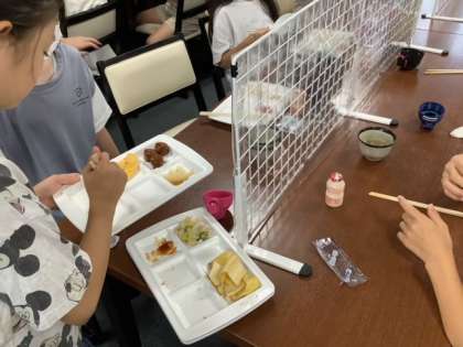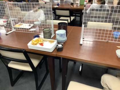 食べ終わると、残飯を集め、食器を重ねて片付けやすくしています。