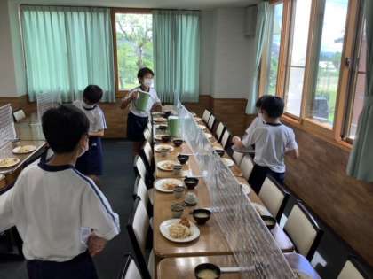 食事前には、消毒をしています。