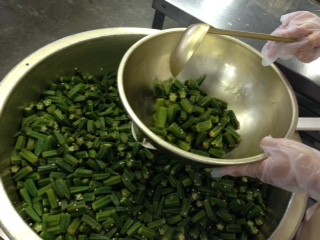 ・オクラの中華あえの配缶風景です。