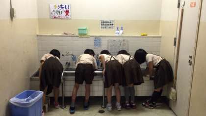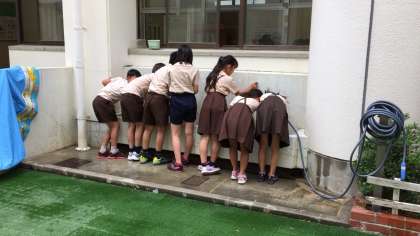 6月30日(火)今日は6時間目に代表委員会があったので、これに参加していない4,5,6年生が「奉仕活動」をしました。毎月1回、ふだんの掃除で手が行き届きにくい水回りや廊下・階段の隅々、トイレ等を熱心に掃除しています。このような活動の積み重ねで、学校がきれいに保たれているんですね。