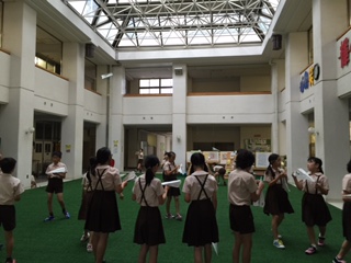 朝から梅雨時らしい雨降りで、残念ながらプールに入ったり、運動場で遊んだりできません。子どもたちは教室で本を読んだり、自由帳に絵を描いたりして過ごしています。