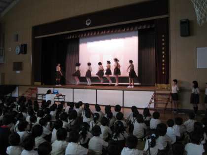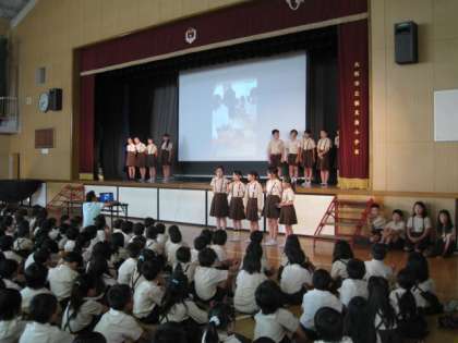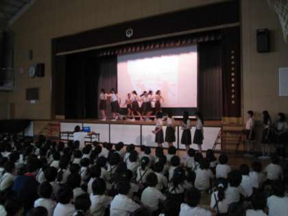 6年生は6月17,18日と滋賀県へ「湖っ子スクール」へ行ってきたので、今日はその時の様子を映像や劇を交えて、他の学年に紹介しました。