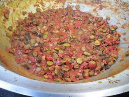 夏野菜とベーコンのソテーはイタリア料理の「カポナータ」やフランス料理の「ラタトゥイユ」のような地中海地方の料理をイメージした献立でした。夏野菜にはなす、きゅうりなどの他に、赤ピーマンといった本市学校給食でも珍しい食材を使用しました。