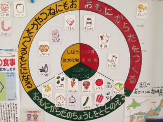 ・給食室前にある献立ボードの本日使用した食品群の写真です。