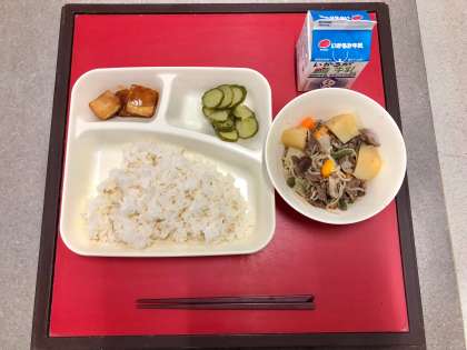 9月1日(木)の献立は「ごはん・牛乳・肉じゃが・あつあげのみそだれかけ・きゅうりのゆずの香あえ」でした。