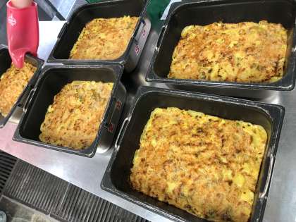 今日の豆乳マカロニグラタンは、小麦アレルギーの児童に配慮した献立で、グルテンフリーの米粉のマカロニやパン粉が使われました。