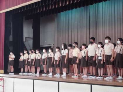 後期代表委員になった児童の決意表明がありました。「最高学年として学校を引っ張っていきたい」「みんなが気持ちよく過ごせる学校にしたい」など、たのもしく決意を表明してくれました。