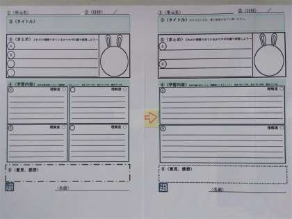 以前にも紹介しました「Nプリ」(新聞の形式を参考にした、ワークシート型のノートプリント)ですが、子どもたちの意見を取り入れて、「項目を減らして記入スペースを広く取る」「マインドマップとリンクさせる」などの改良を施しました。