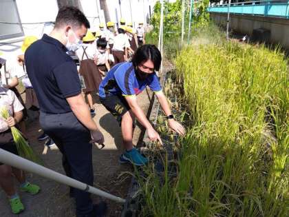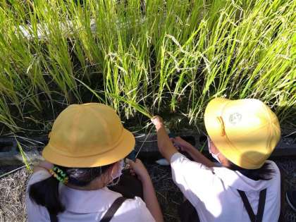 晴天の日に稲を刈り取るのは、とても楽しい体験でした。