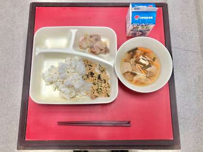 10月21日(金)の献立は「ごはん・牛乳・鶏肉のゆず塩焼き・ソーキ汁・ツナ大豆そぼろ」でした。