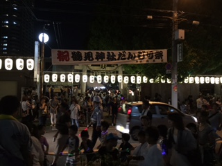 7月18日(土)台風11号の影響で朝のうちは雨でしたが、午後からは良いお天気になりました。校区にある鶴見神社では18,19日と夏祭りがあって、本校の子ども達も浴衣等でたくさん