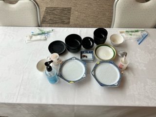 食事後は机である程度片付けた後、お茶をもらって部屋に戻っています。