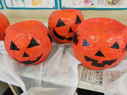 張り子で「ジャックオーランタン」を作りました。色んな顔や模様があります。何とかハロウィンに間に合いました。魔除けにどうぞ。