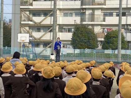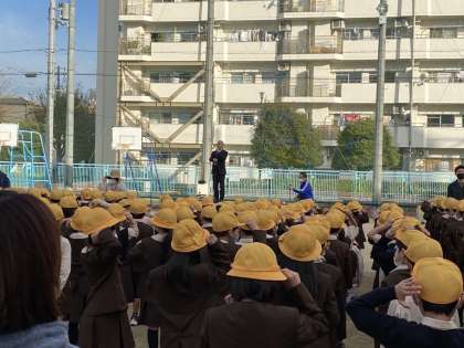 校長先生からは、「気候も冷えてきて、ポケットに手を入れたまま歩いている子がいます。転ぶと危ないので、ポケットには手を入れず、手袋を着けるようにしましょう」と登下校時のお話がありました。