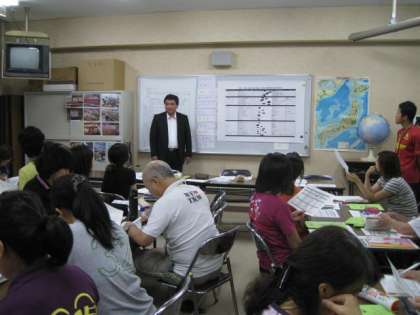 本校では「自分の思いや考えを表現し、伝え合う子どもを育てる。-コミュニケーション能力を育成する指導法の工夫-」というテーマで研究に取り組み、全学年で研究授業を行っています。今回の授業の後も本校の先生が集まってワークショップ形式で討議会を持った後、大阪市小学校教育研究会社会部副部長で大阪市立鶴見小学校の井上和夫校長先生から指導助言があり、3年の取り組みを評価していただきました。