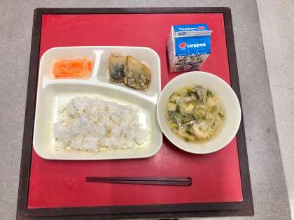 1月16日(月)の献立は「ごはん・牛乳・さばのカレーたつたあげ・五目汁・紅白なます」でした。