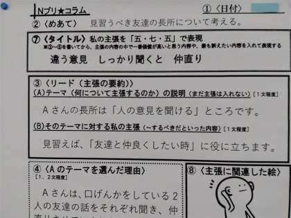 「Nプリコラム」と言って、自分の意見をまとめる学習です。