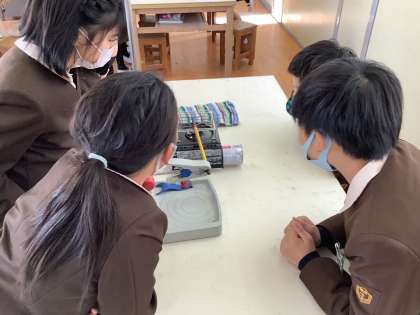 今回は、金属をあたためるとどのように変化するのかについて学習しています。金属の周りのテープがどのように変化するのか確認しました。速く変化するところもあり、予想と比べて考えることができました。