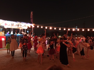 7月31日(金)鶴見南小学校で、鶴見地域活動協議会主催の納涼盆踊り大会が行われました。運動場中央に組まれた櫓を囲んで各町会のテントが並び、地域の方々や子どもたちがたくさん集まりました。バトンクラブSKYのメンバーも頑張りました。今日で7月は終わりますが、盆踊りは明日も行われます。