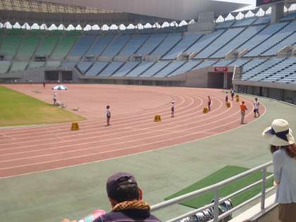 暑い中、普段なかなか走ることができない長居競技場で100m走と4×100mリレーに出場し、他校の児童と熱戦を繰り広げました。児童は、練習のときよりタイムが縮まったと喜んでいました。決勝に進出した児童やチームがいて、応援も盛り上がりました。