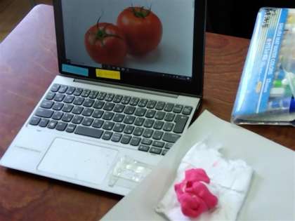 パソコンで写真を見ながら、そっくりに作る学習です。