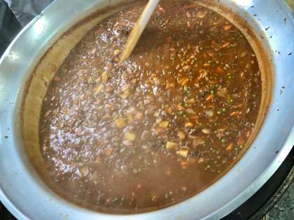 2月13日(月)の献立は「ハヤシライス・牛乳・キャベツのバジル風味サラダ・みかん(缶)」でした。