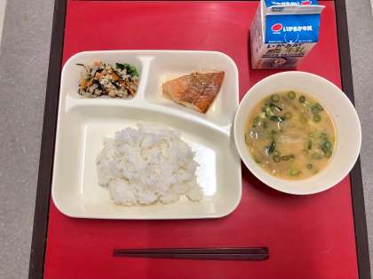 2月14日(火)の献立は「ごはん・牛乳・あかうおのレモンじょうゆかけ・みそ汁・高野どうふのいり煮」でした。