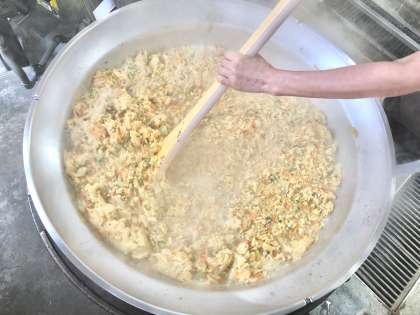 2月16日(木)の献立は「カツ丼・牛乳・はくさいの甘酢あえ・まっ茶大豆」でした。