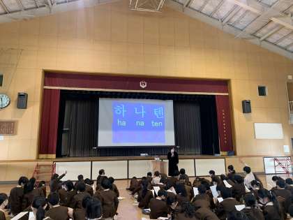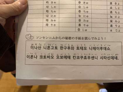 4年生はハングルについて学習しました。ワークシートを使って、自分の名前を書いたり、クイズに答えたり、大盛り上がりでした。最後にはソンセンニムからの手紙をワークシートを見ながら読んでいきました。