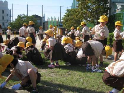 9月19日(木)は運動会前ということで、夏の間に伸びた雑草を抜いたり、運動場のトラックやフィールドの小石を拾ったりしました。運動会で自分たちが使う場所なので子どもたちは一生懸命取り組み、ビニル袋いくつもの雑草とバケツ何杯もの小石が集まりました。