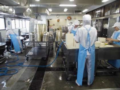 今日は洗浄作業や消毒、機器の試運転などを調理員全員で行いました。