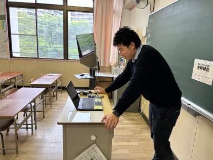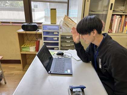 オンラインテストを実施していました。1年生は「じゃんけん」にも挑戦しました。
