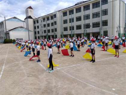 きれいに並びつつ、フラッグの様々な振り方を覚えているところです。