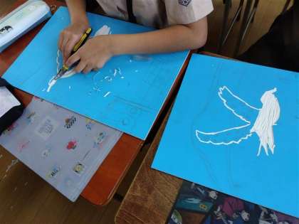2学期の広島修学旅行に向けて、総合的な学習の授業でも平和学習を進めています。