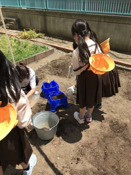 生活科の学習に取り組んでいます。ミニトマトなどを植えるために、