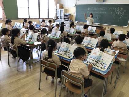 鍵盤ハーモニカを音の学習をしています。早くドレミと仲良くなって