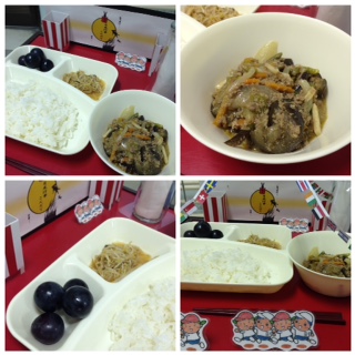 本日の献立は「マーボーなす・もやしのごま酢あえ・ぶどう(巨峰)・ごはん・牛乳」でした。