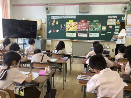 栄養指導をしていただきました。今日は、黄・赤・緑の3色にそれぞれどんなはたらきがあるのかということについて学習しました。色んなイラストを見ながら、どれが黄・赤・緑なのかを考えていました。日々の給食でも、毎日3色にそれぞれしっかり分けられていることも学習することができました。