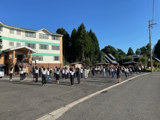 ラジオ体操で一日の活動開始です。