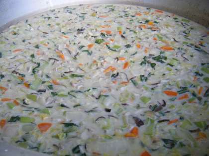 写真右は出来上がったばかりのはくさいのクリーム煮の様子です。
