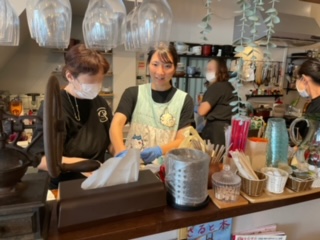 本校教員がアソーラカフェにて、社会体験研修を受けています。