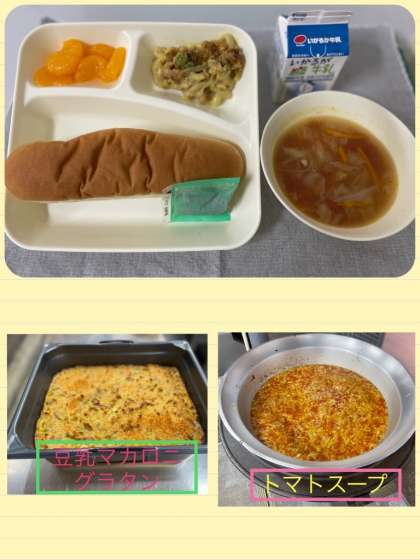 ※豆乳マカロニグラタン(米粉) ※トマトスープ