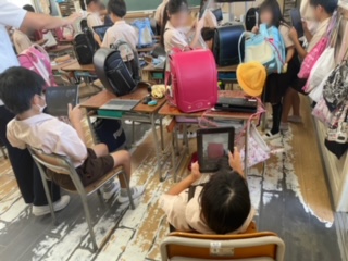 1人1台学習者用端末を使い、大切な自分のランドセルのすてきな角度からの一枚を撮影します。