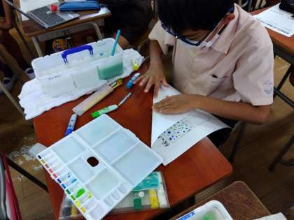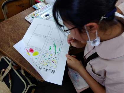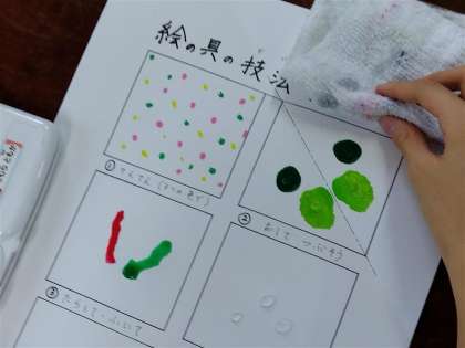 図画工作科の時間に、様々な絵の具の技法を体験する活動を始めました。